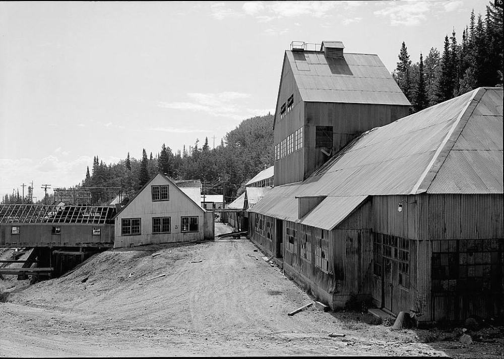 Jack E. Boucher, Photographer, August, 1971. MINE SHAFT BLDG FROM E: NOTE ROOF REMOVED FROM ORE CAR TRACK ENCLOSURE TO EXTREME LEFT. TERMINAL BLDG IS IN LEFT CENTER. CUPOLA-LIKE ENCLOSURE ON MINE SHAFT BLDG HOUSES SHAFT LIFT.