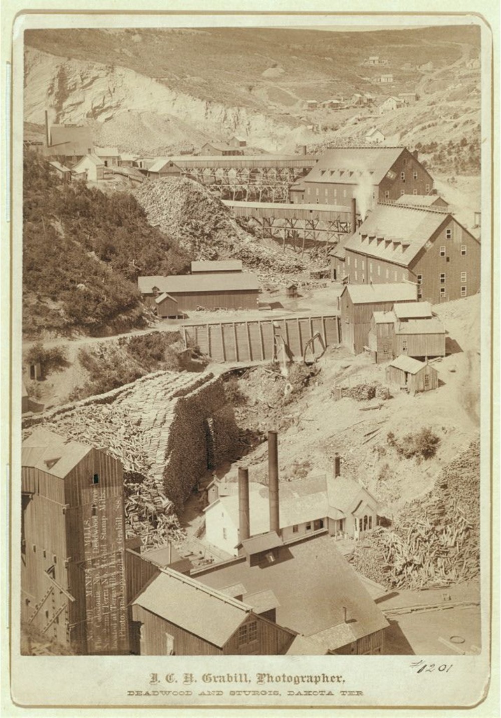 Mines and Mills. The Caledonia No. 1, Deadwood Terra No. 2, and Terra No. 3. Gold Stamp Mills, located at Terraville, Dak. 1889