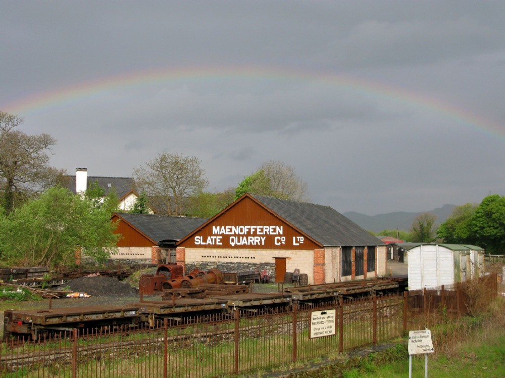 Formerly used for storage of slate and transhipment to the Cambrian Railway, from whose station the photo is taken.