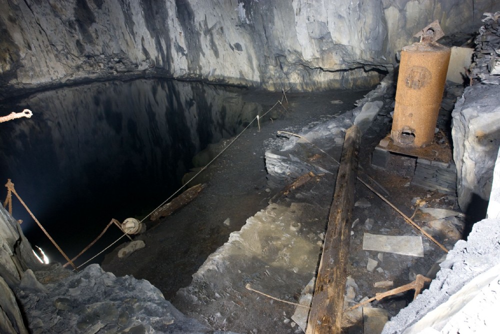 Remains of steam crane. Boiler and part of timber jib support evident. Remains of jib in water to the left.