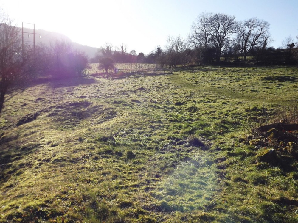 View looking across the south part of the site. To the right edge is the small filled shaft, to the right is a hollow (possible shaft), to the top right are some low regular earthworks, possible associated with ore processing, the fences area is a pond (unsure if associated with the mine)