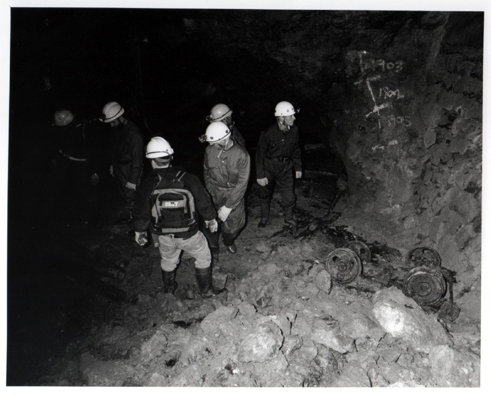 Adit level stopes and an old wooden frame truck chassis, later to go missing.