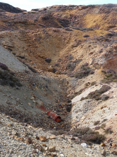 Collar of infilled shaft, directly above adit. Adjacent to Pearl Engine house.