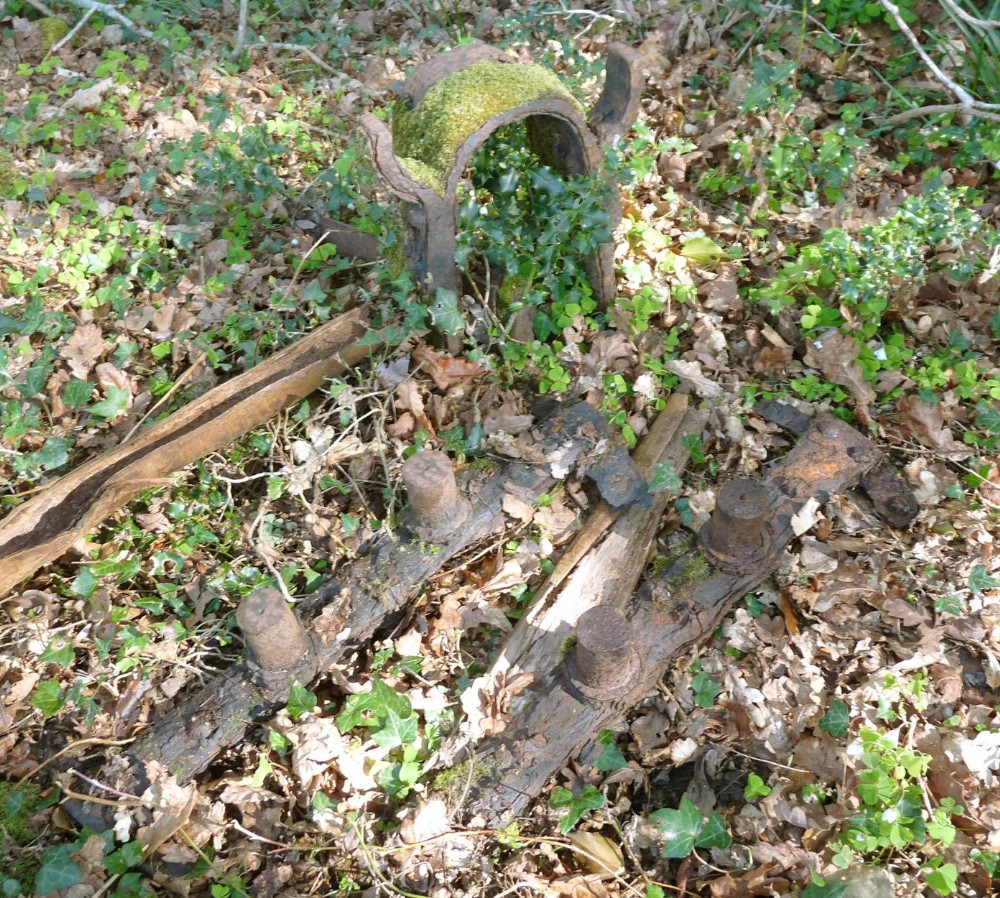 Anyone know what these are the remains of? The hoop is cast iron with flanged base and integral 'horns' at the top. The two flat bars are about 2ft long with riveted-on curved ends which may once have been longer. Two large 2" diam pins are riveted onto the flat bar and are close together. The pins have always been short pins as shown.
