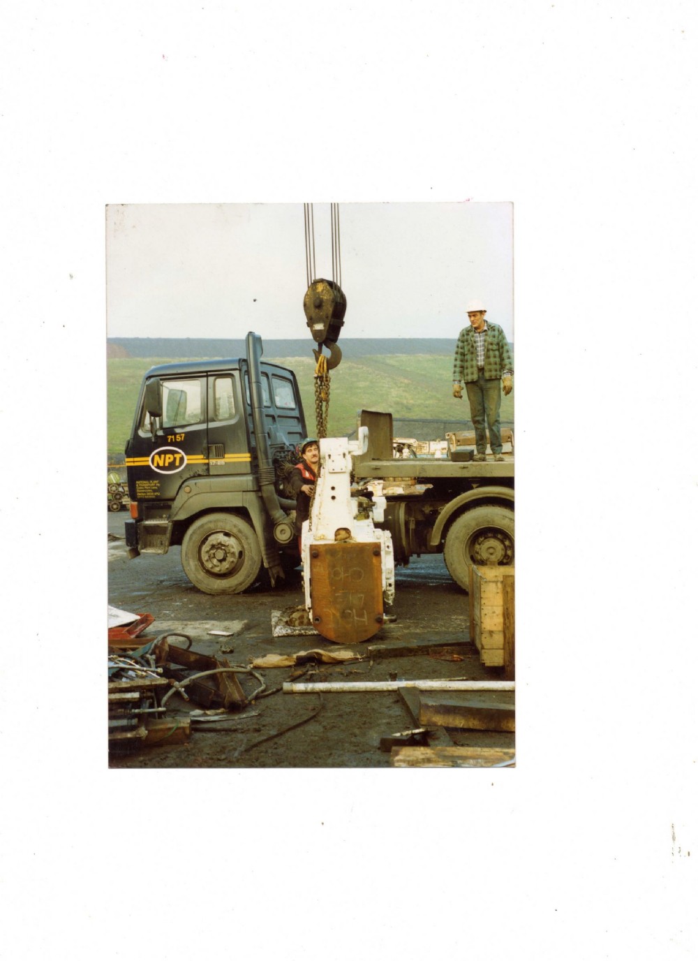 British Coal sold off its transport section which became National Plant and Transport. Here we see a lorry delivering shearer parts to Calverton in the early 1990s. On the top of the grassed section of the Tip in the background you see the covered in Dirt Conveyor.