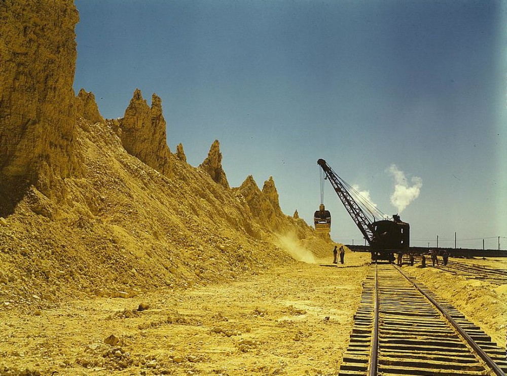 Nearly exhausted sulphur vat from which railroad cars are loaded