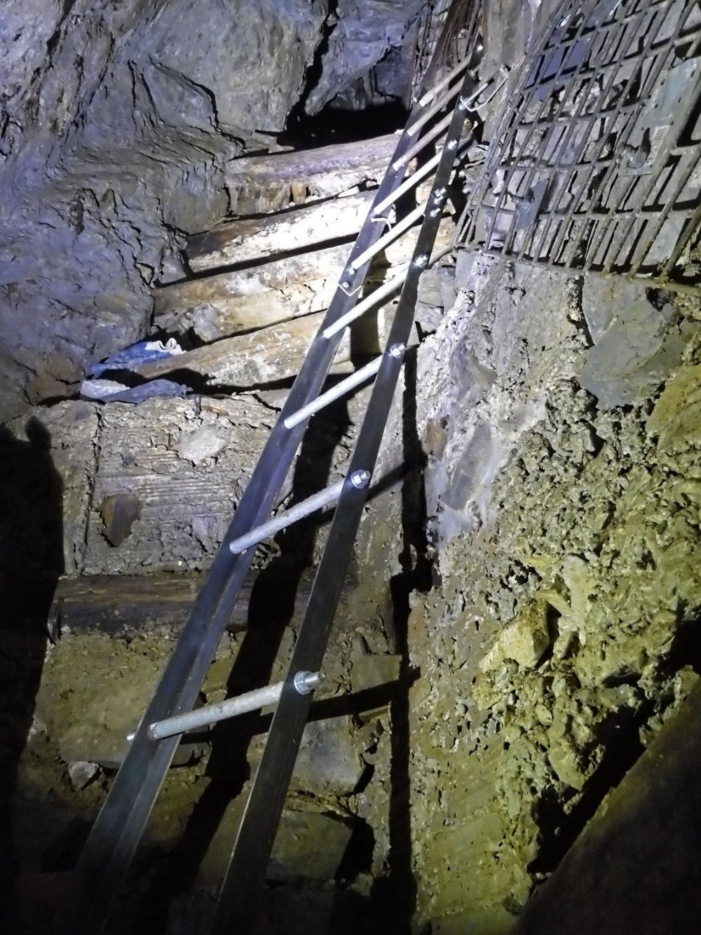 The bottom ladder had failed through the dry rot and so the pre-treated top ladder was relocated to the bottom, and replaced at the top with the new steel ladder.