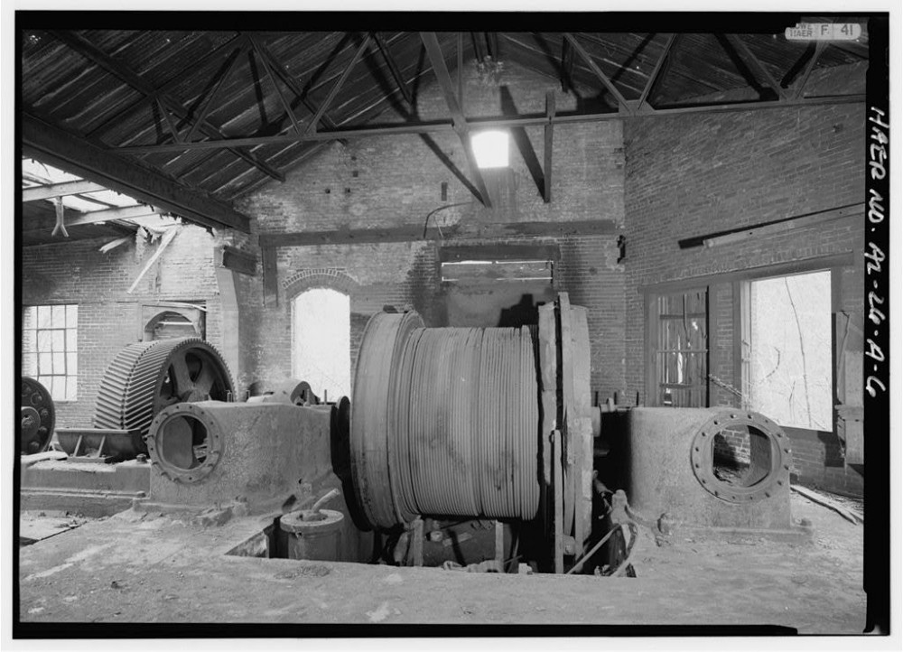 INTERIOR VIEW SHOWING HOIST DRUM, LOOKING SOUTHEAST.