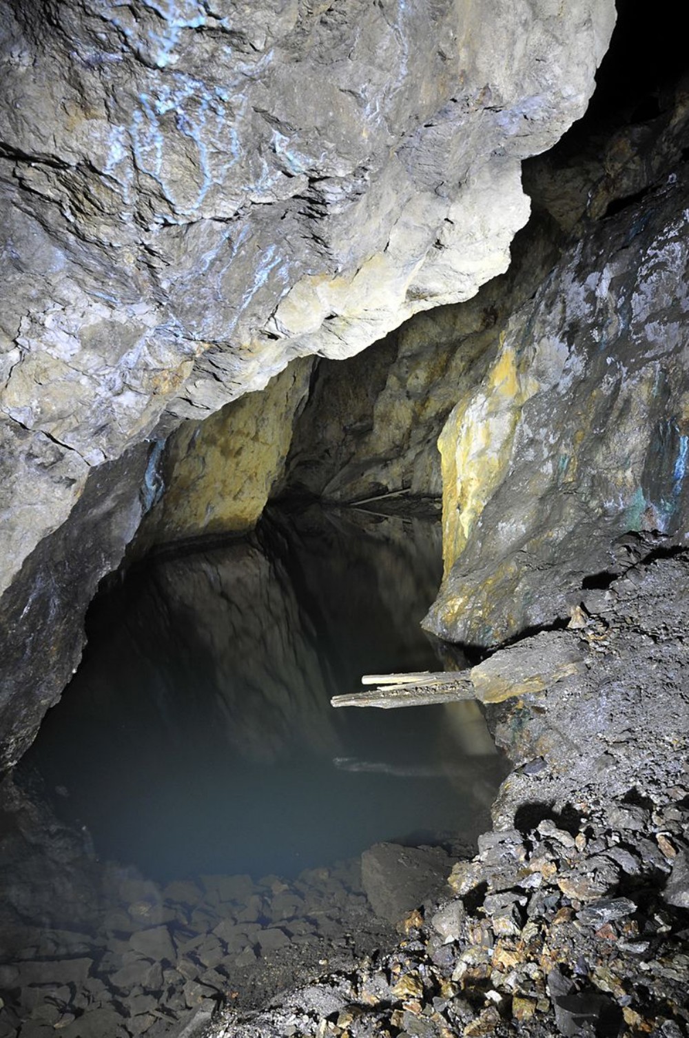 View East along the flooded North East and West Lode stope, Main Adit. [October 2012]