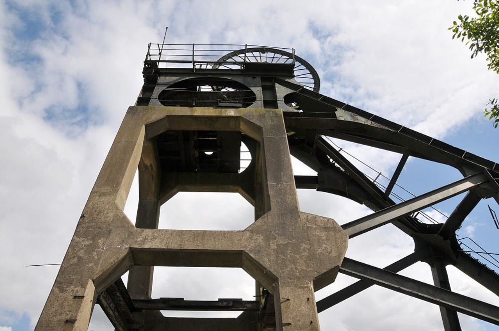 The North shaft headframe with the main steel legs encased in concrete to strengthen them.
