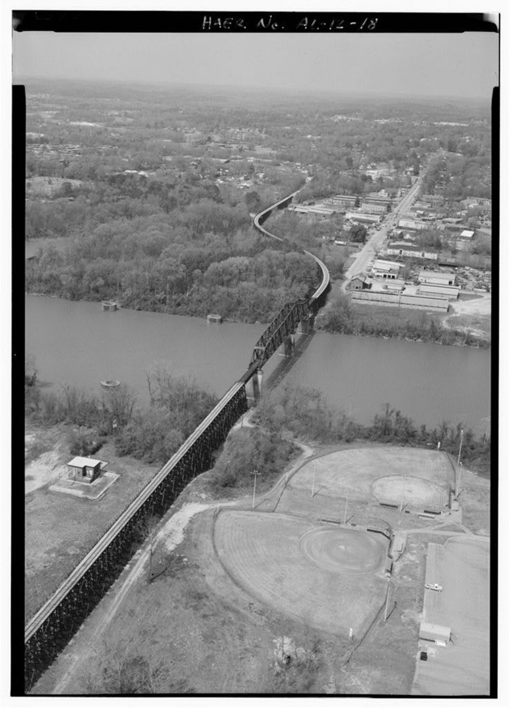 VIEW LOOKING TOWARDS NORTHPORT, GULF MOBILE & OHIO RAILROAD BRIDGE LINKS TUSCALOOSA AND NORTHPORT.