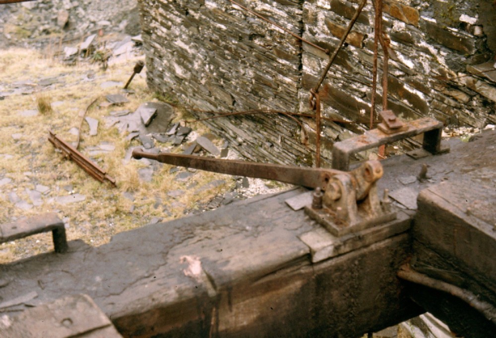 Detail view of one of the brake levers, the pivot of the clutch lever (lever removed) to the right. The thing on the ground is one of the stop blocks with it's couterweight (invariably propped up out of use) in the distance.