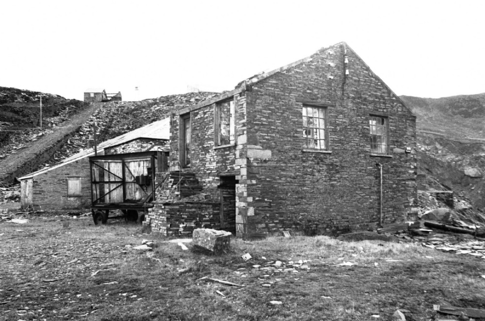The C Incline motor house with the drumhouse beyond it. Higher up can be seen the Gloddfa Ganol No. 5 winder drum and motor house.