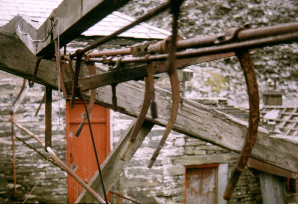 Looking from the old motor house towards the original engine house. The curved levers are the speed control, and the smaller ones the one/off switch and the motor brake.