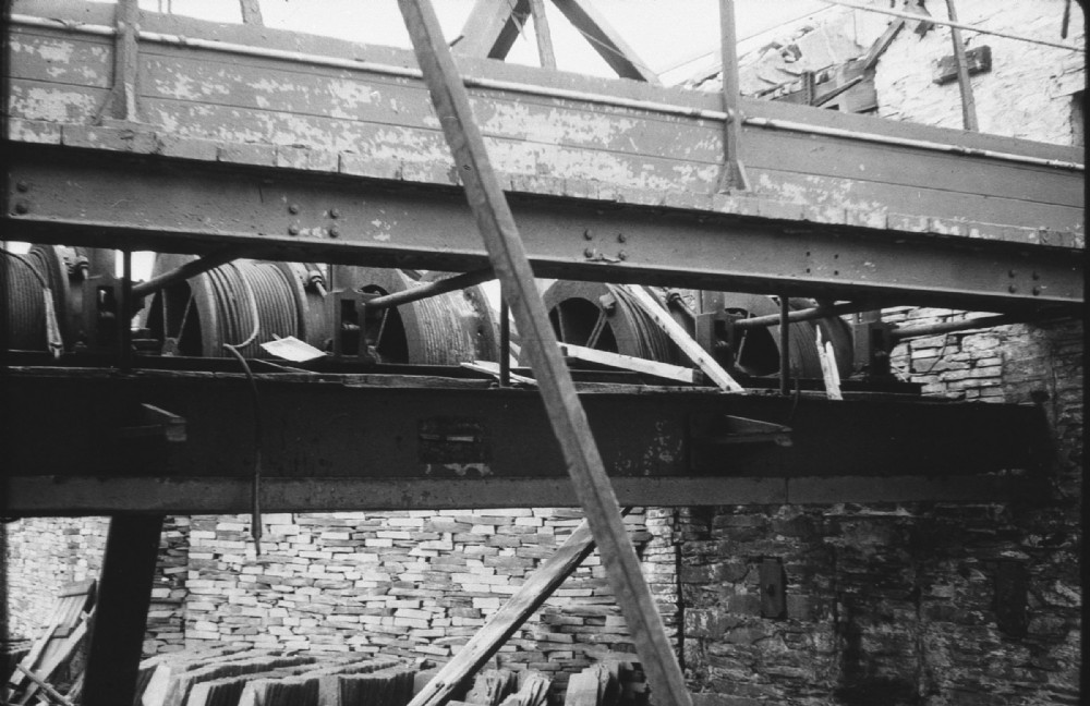 The late Rodney Weaver took this shot of 5 of the 6 drums of the Middle Quarry incline just before it was scrapped. It had been rebuilt by DeWinton's in 1895. Notice the similarity in constructional details of the brake stands and clutch rods to the Llechwedd Robey.