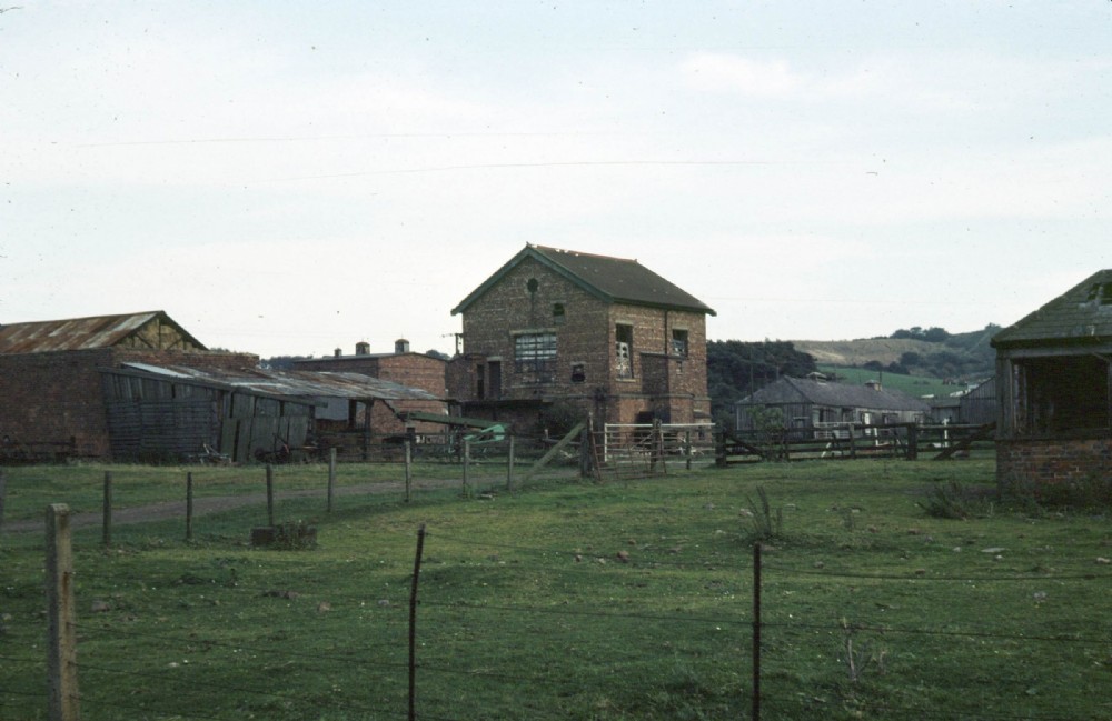 Walled off shaft to left, electric sub station in background (with roof ventilators), main winding house in middle, weighbridge to right. The wooden stables in right background date from 1870 are the only items now remaining (just!).