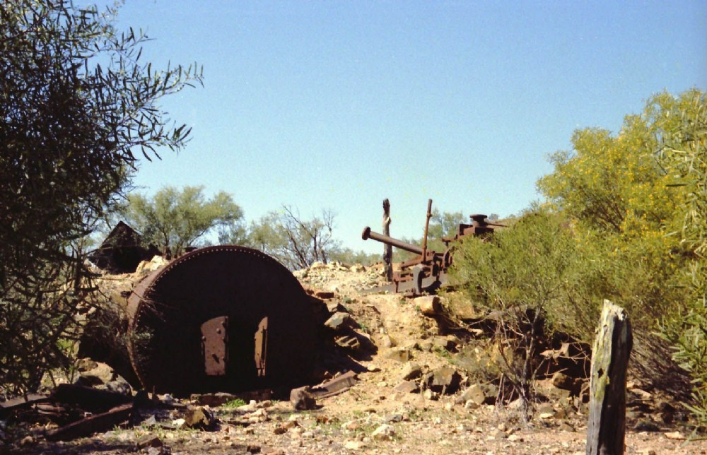 Remains of old boiler at crushing plant site ca. 1982.