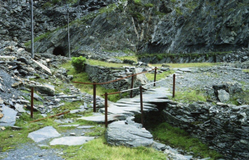 Looking east from the Maenofferen Lower Mill site (Ex-Percival's Mill) towards the Old Lord tunnel and Cookes Level. The footbridge was over the open drain.