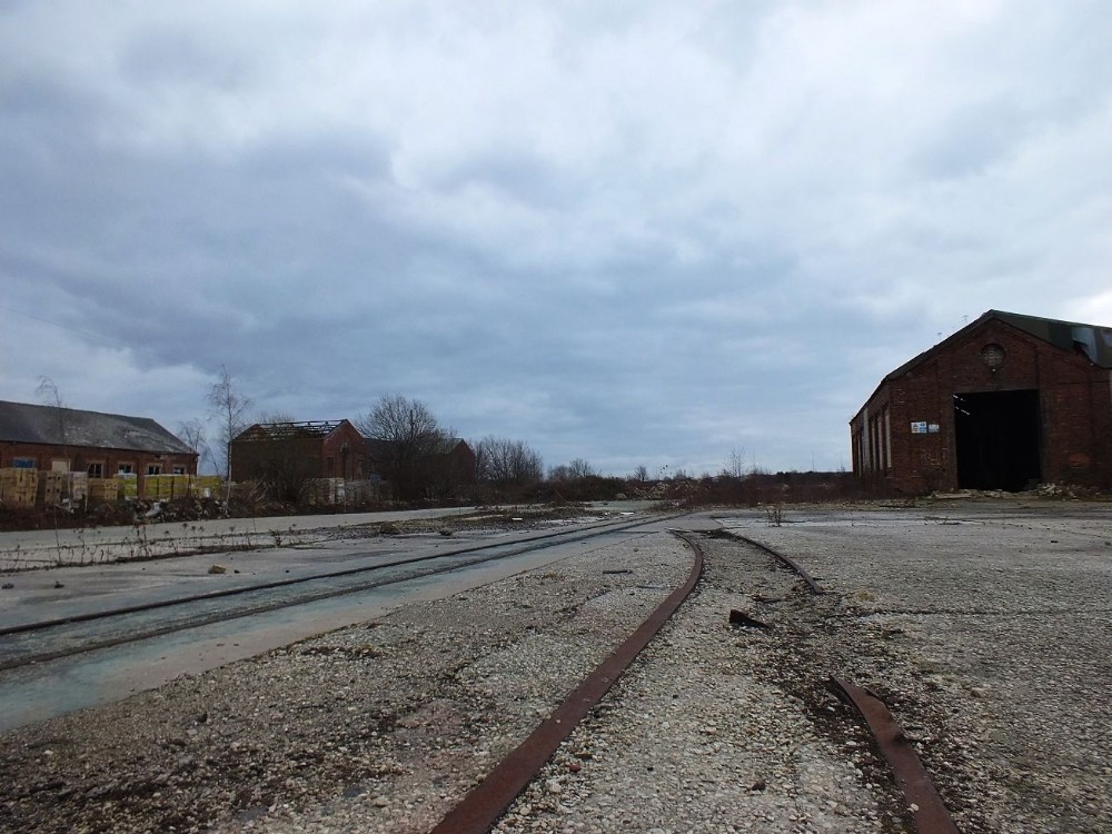 View of old rail, the engine shed on the right, the workshops on the left and the winding engine houses far left