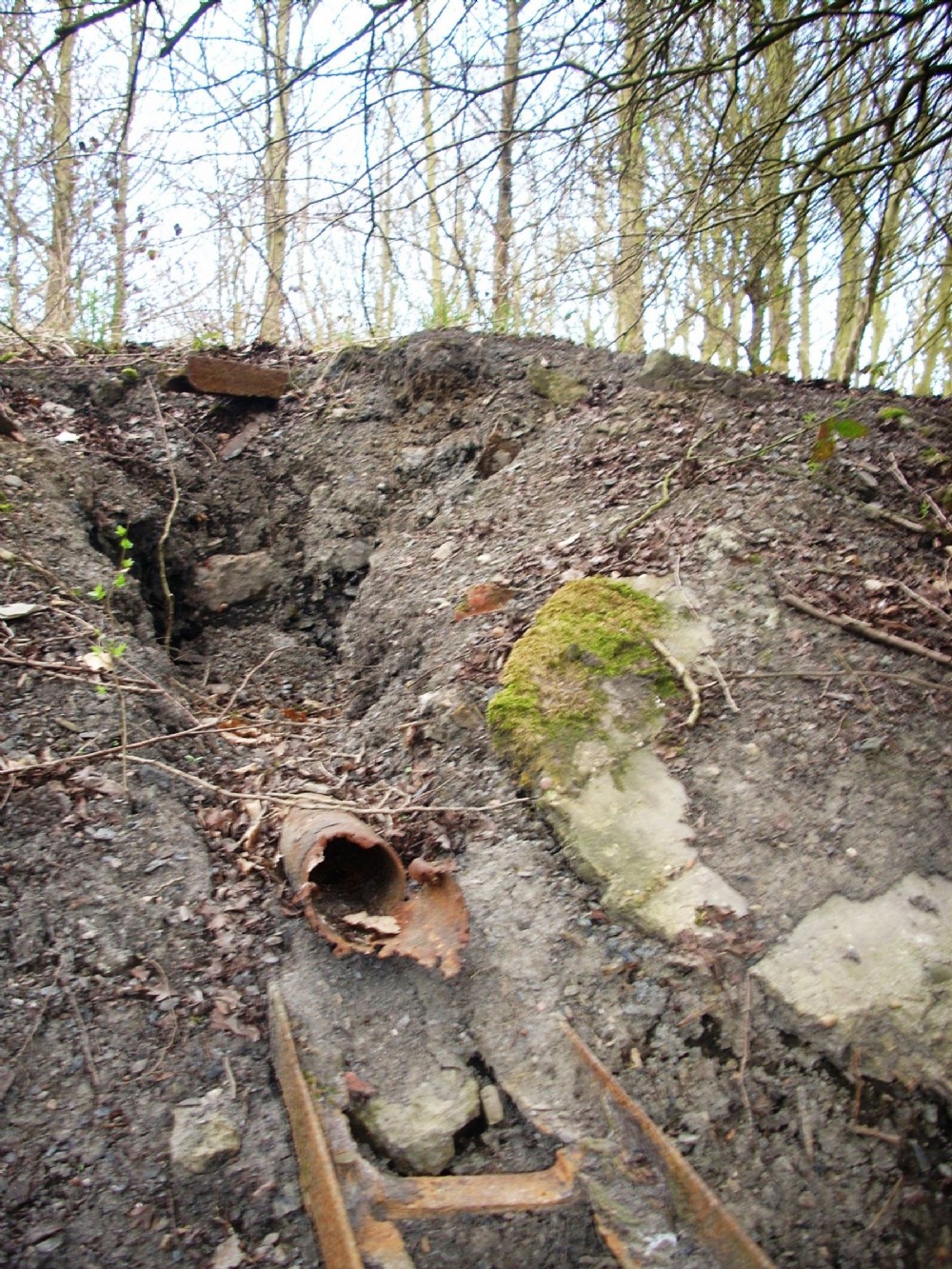 Old rail which runs across the stream between the shaft area and the site of the former coke ovens (Mar 2011)