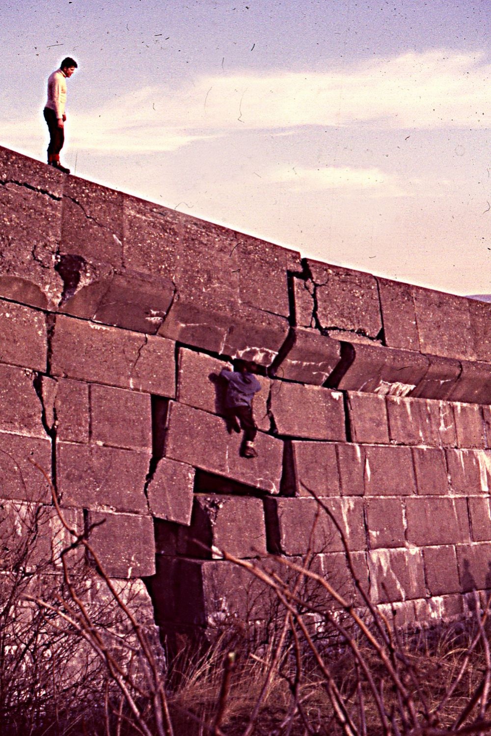 This picture ,one of several, was taken in 1963. It is of the 1st, old sea wall ,that was built to protect the iron mine. It was emailed to me by Jim Newton, Red Rose caving and Potholing Club in December 2010