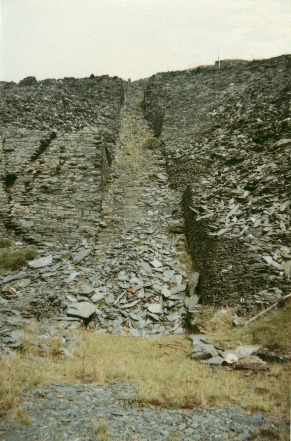This is labelled as such because it connected with the "Old Tuxford" floor (Diffwys Floor 0) and continued to do so after the Tuxford Incline proper was extended up from Floor 0 to Floor 3. It was correctly referred to as the "Long Water Balance" and was a water balance incline connecting Floor C with the "Writing Slate Mill Floor" - before Floor C was connected to the Diffwys/Votty Incline it lifted finished slates from Floor C to the upper floor, where the water wheel/chain operated incline lifted them up to the Rhiwbach Tramway. The same water wheel operated the writing slate mill.