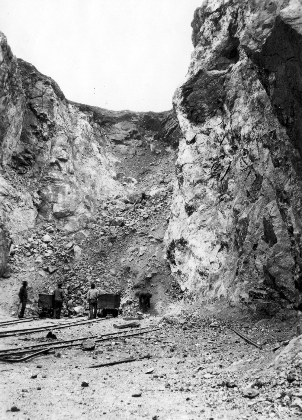 Open cut on the first level of Metcalf mines, country rock granite porphyry. Greenlee County, Arizona. Circa 1901
