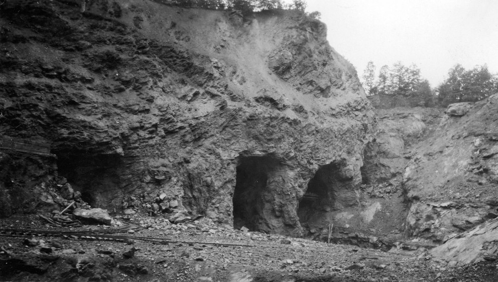 Open cut with underground stopes in pyrrhotite mine of General Chemical Company. Carroll County, Virginia. June 3, 1927.