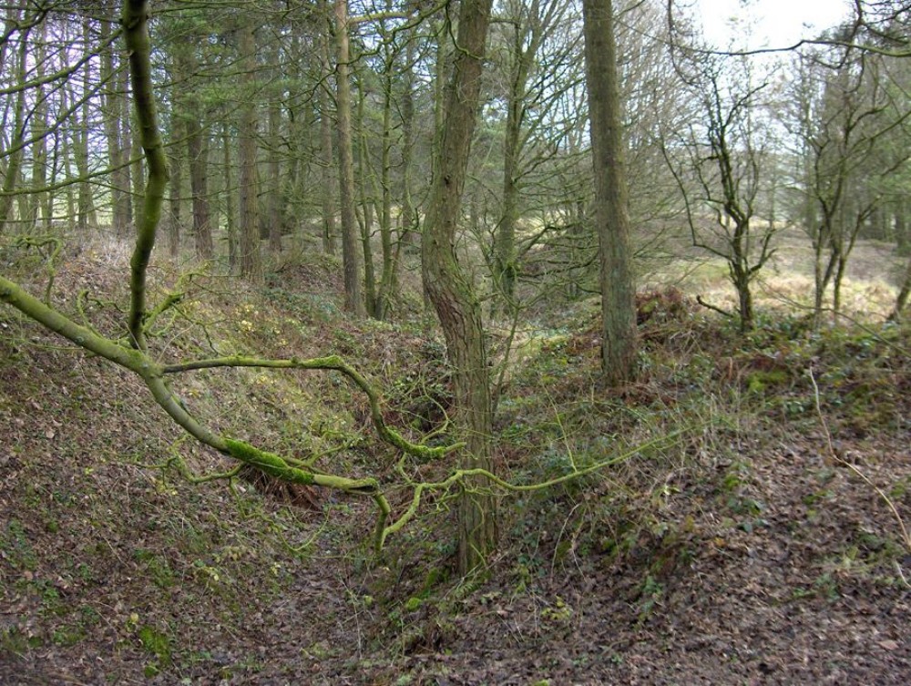 Most of the ground within Hard Rake plantation has been disturbed by mining, but at this point an opencut on the main Hard Rake vein is visible.