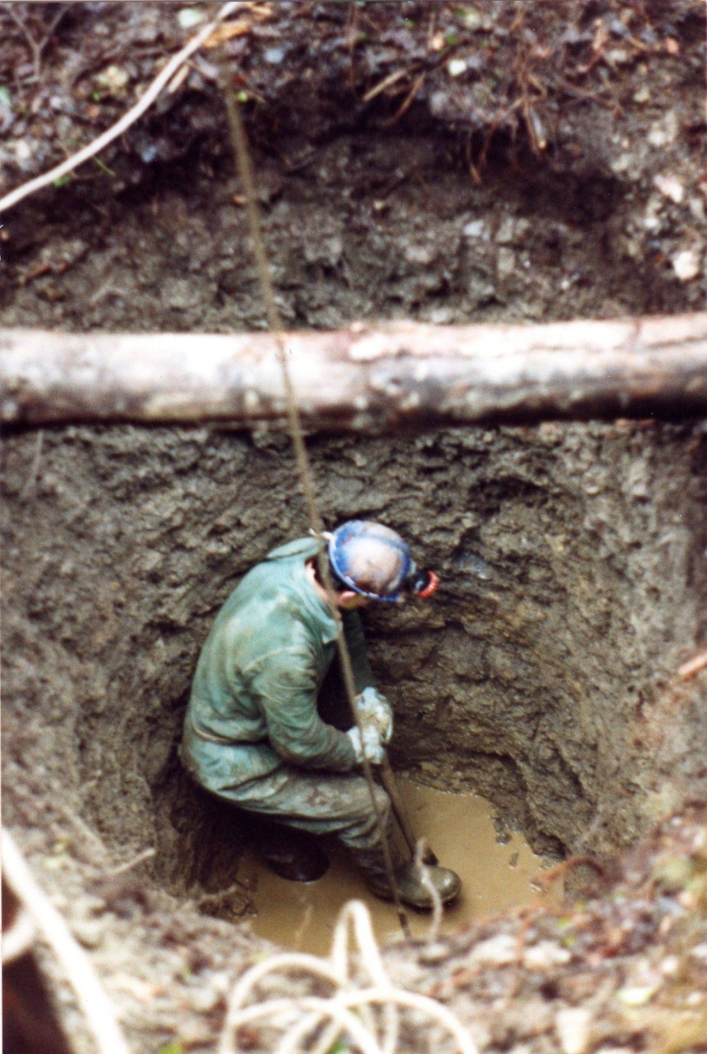 The start of the dig in the suspected pumping shaft of Orchard Wood Mine (now Archer Wood) near Battle, 1988.