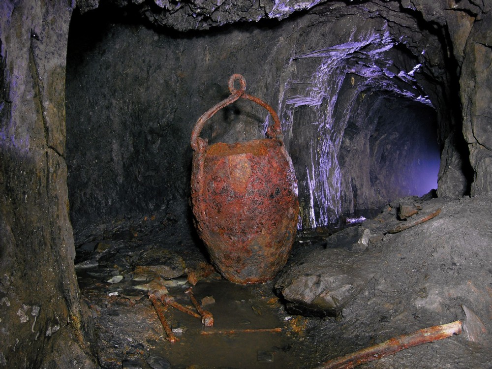 Having ascended about 10' to a higher level, we found this rusting ore kibble.