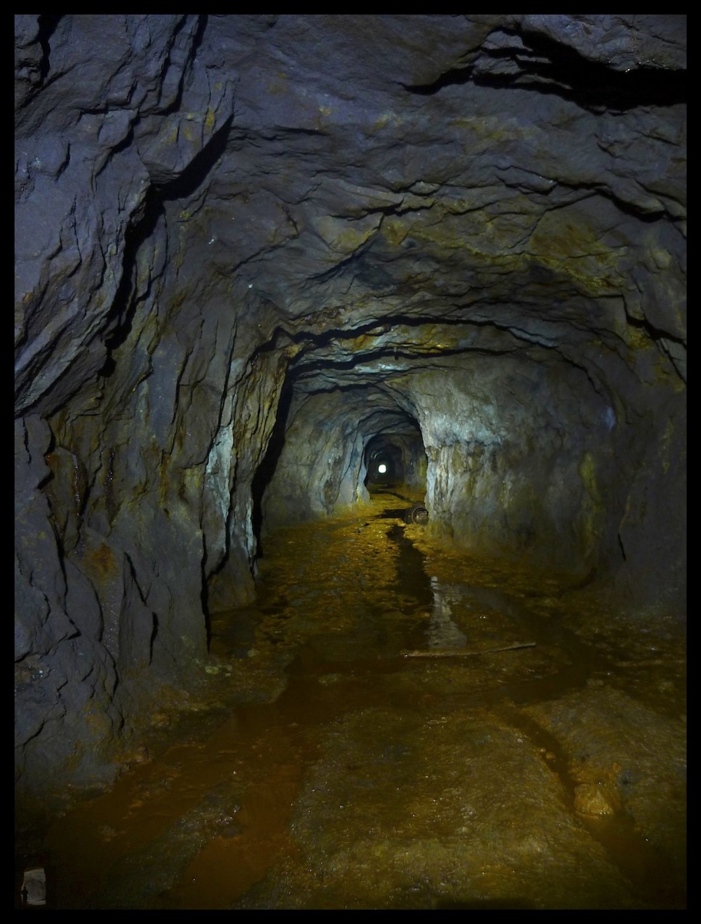 Looking back down the length of the main drive in No 4 level to the adit mouth.