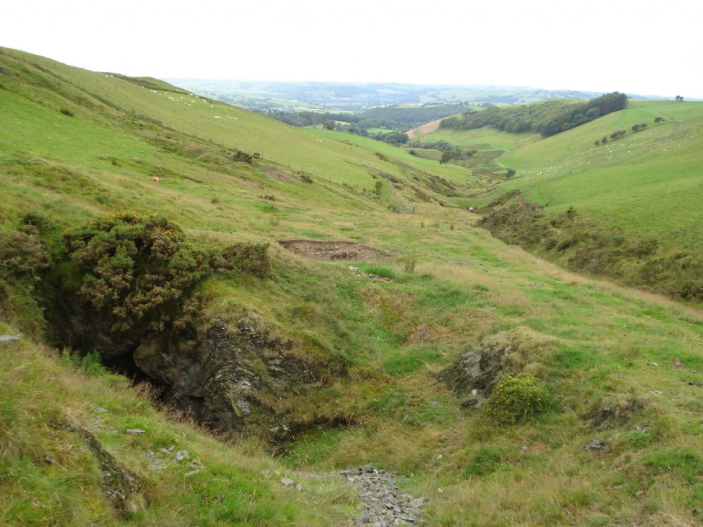 Looking down Nant Cennant to the west taking in all the features apart from the 2 easternmost shaft mounds