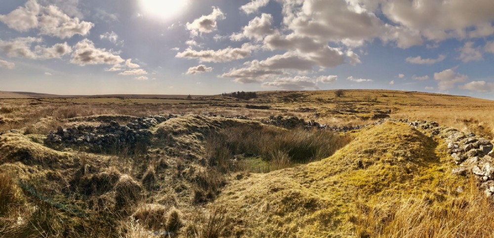 As viewed from the Whiteworks adit outfall. Note the lower elevations dominated by underground workings, whilst the higher workings on the hill are those of Stream/open works. How ancient is the latter?