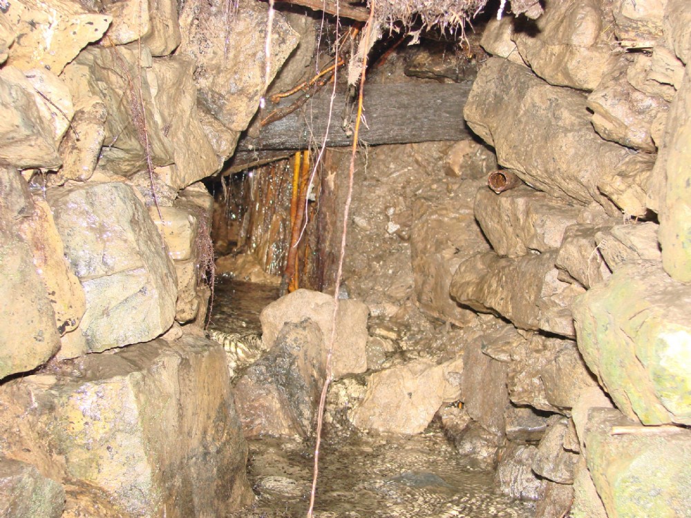 Loose material has slumped in from the right and displaced some limestone blocks behind which the water has backed up somewhat