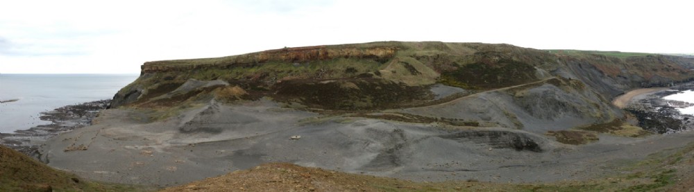 The obvious track through the site stretching left to right has all but vanished towards the right of the picture making access from the cliff top slightly precarious. Any further landslips will render the now undercut path impassable.