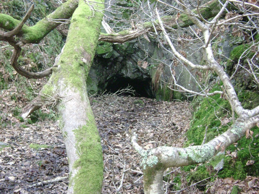 The adit entrance to Pant-gwyn quarry, almost totally blocked now. I remember when we were kids we used to paddle canoes through here into the quarry! 100 yards and pitch black with only a 9v torch to guide the way! There was about 6' of headroom then.
