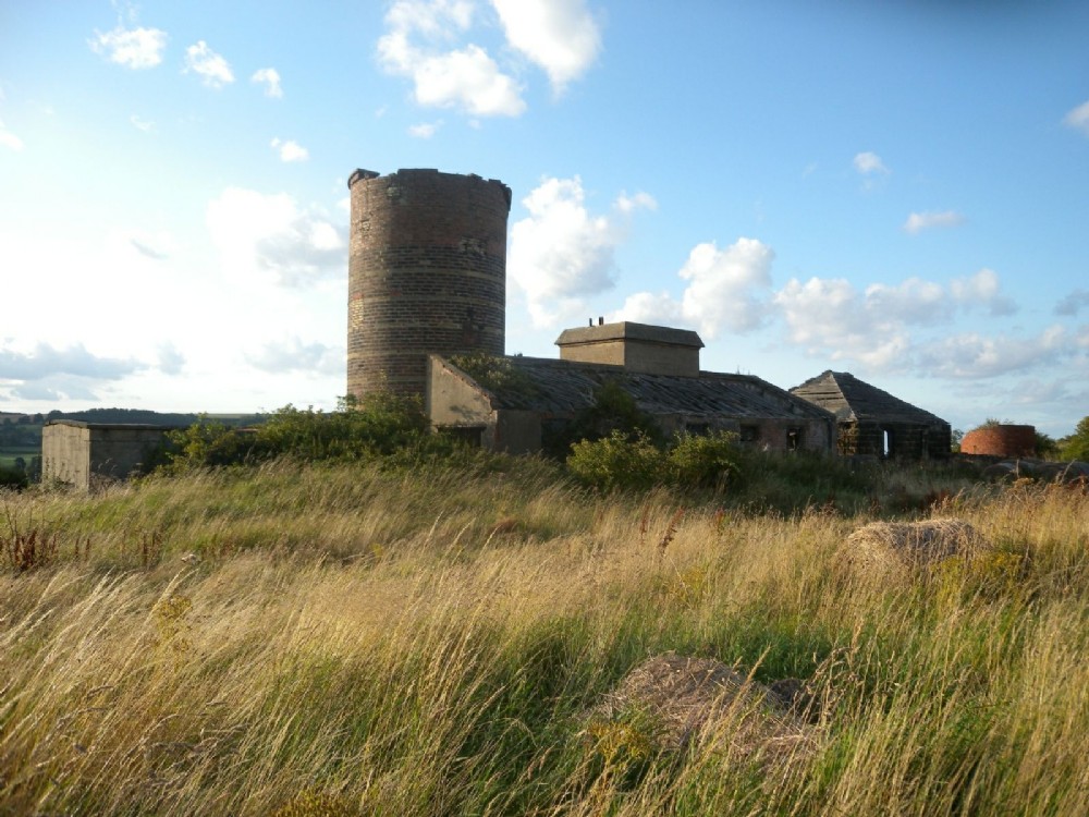 Upcast shaft, fanhouse, secondary winder house and downcast shaft.
