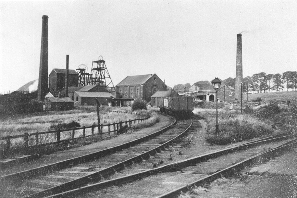 Park Pits post 1926. The right headframe is for the Lawrance Pit and the left served the Oval Pit. The Round Pit shaft is behind the Oval enginehouse.