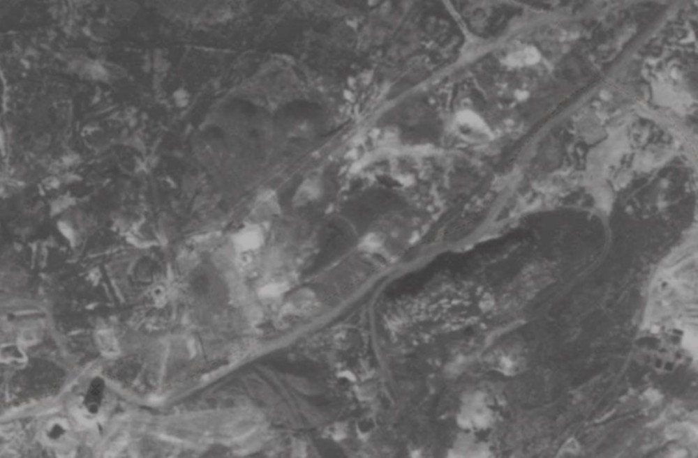 An interesting aerial photo of 1945, showing a birdseye view down the shafts: from bottom left-Sidney, Charlotte (whimsey visible?), Lemins and Beers. CYD, Francis and Calciner