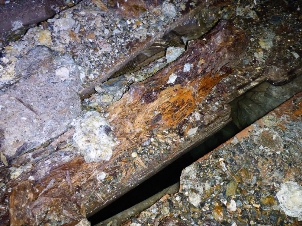When the vein is reached great care is needed as there are sumps under the floor. The timber covering is rotting and probably would collapse if stood on.