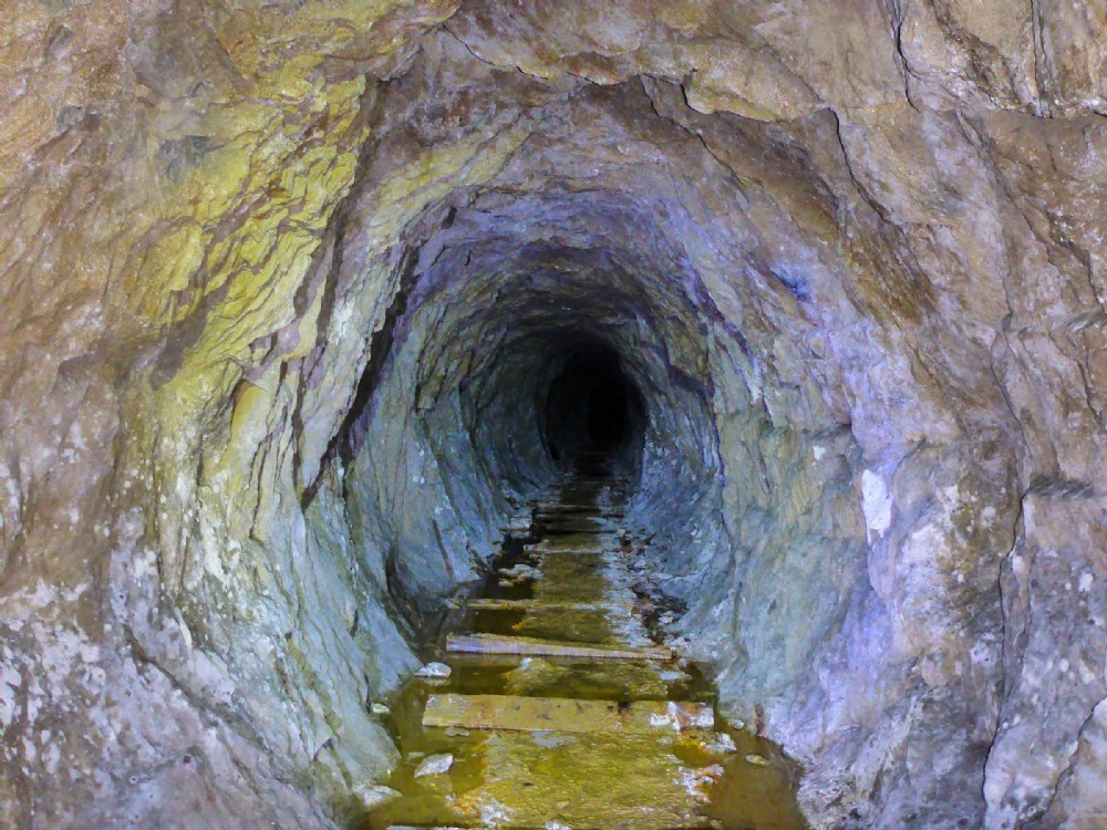 The rail line has been removed but the sleepers remain in situ towards the end (deepest) section of the level.