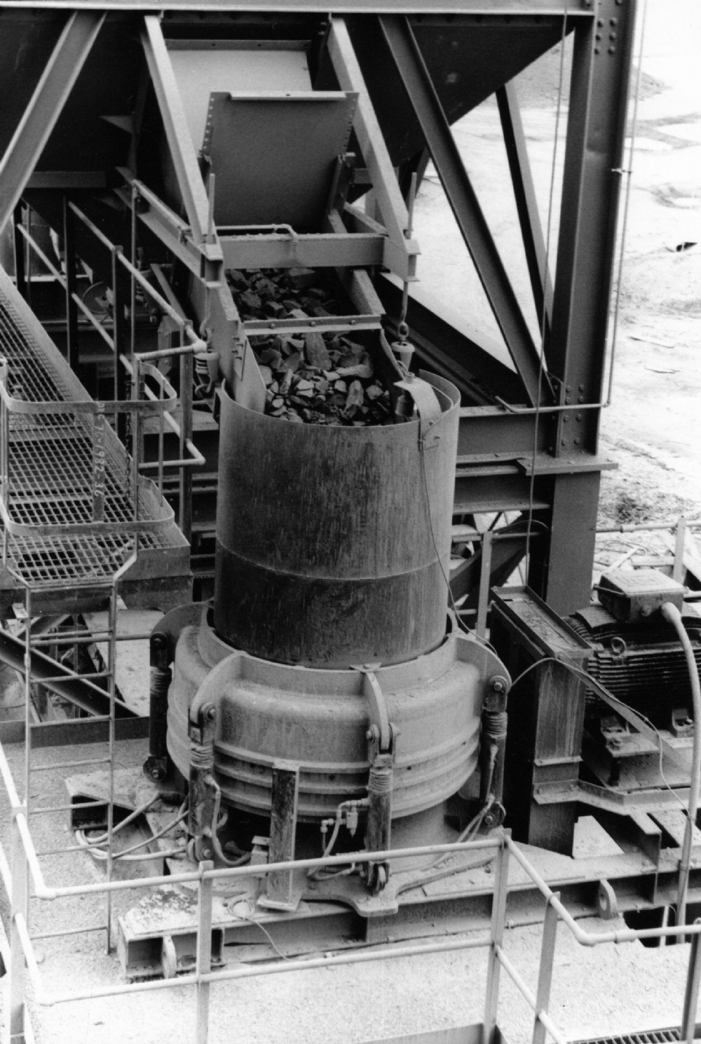 New Pegson cone crusher. Secondary crusher just installed and before the housing was built around it in 1999.