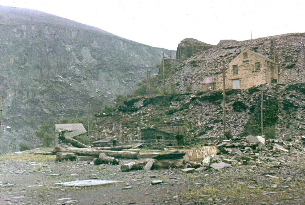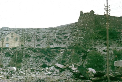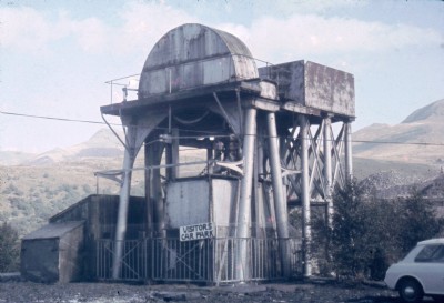 It's not obvious - the scaffolding pole barriers in the middle distance are round the open balance shaft. To the left of that are the slab walls which supported the headgear. The brownish thing behind the dark grey building are the remains of the second balance. The balances were called George and Douglas, after the galleries they served.