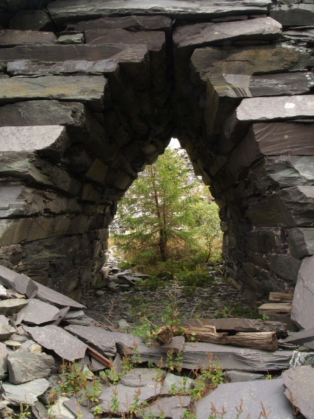 The incline was for lowering usable produce and the archway to allow lateral movement of waste to the tips beyond.