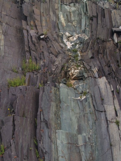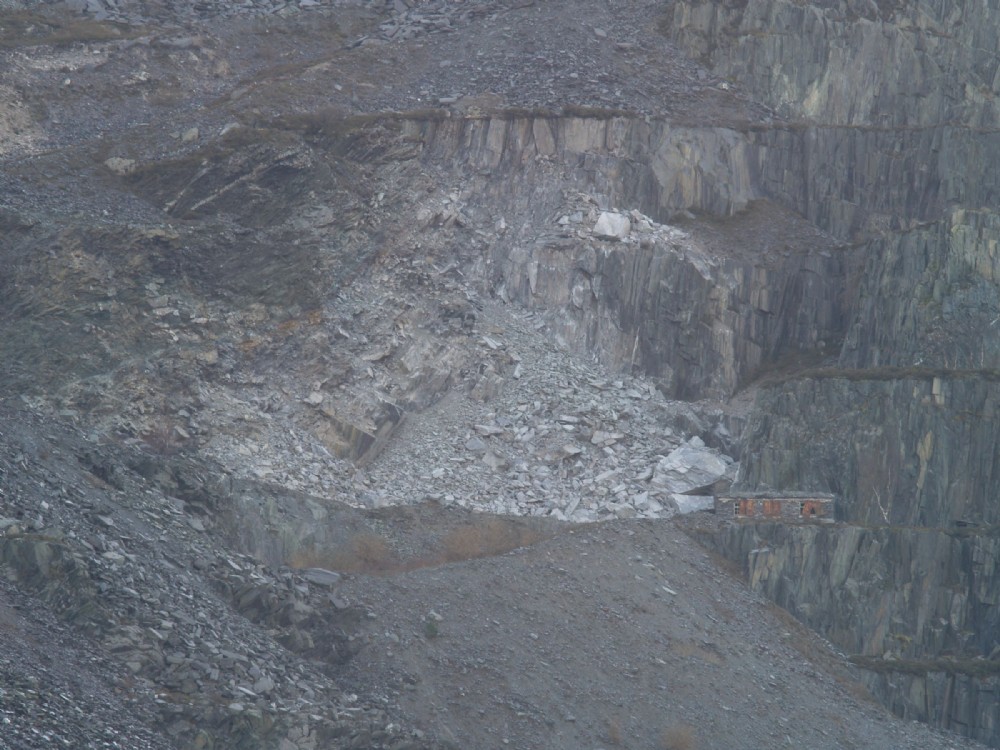A recent rock fall near the caban.