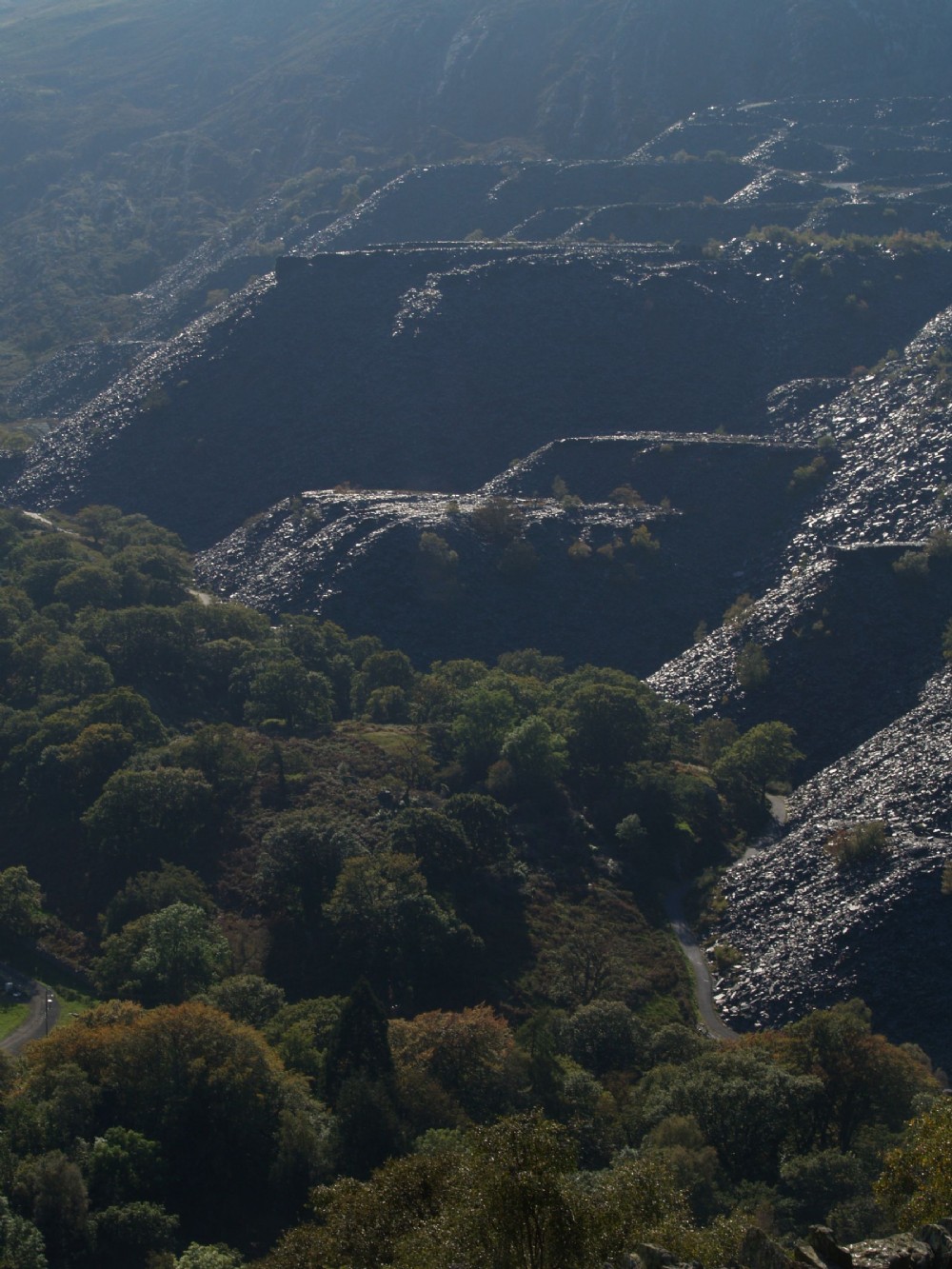 Landscape detail. Old tip heads from East. Pen clip. Nant Ffrancon.