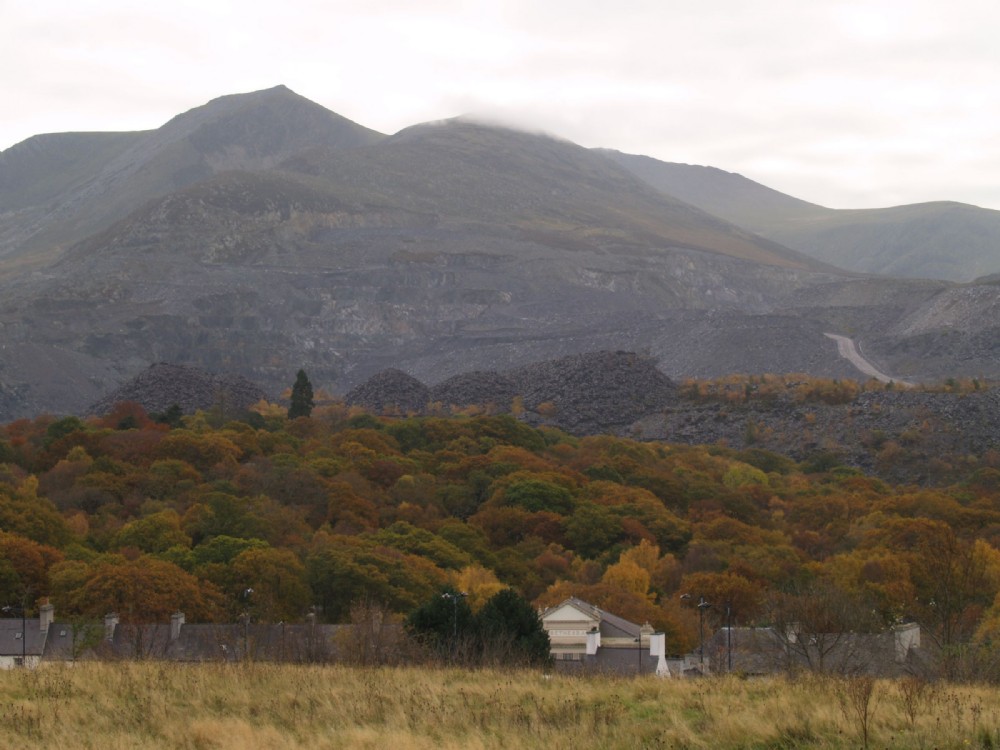 View from Pant-Dreiniog. Bethesda Chapel on the High Street. Landscape.Trees. Autumn, 2007.