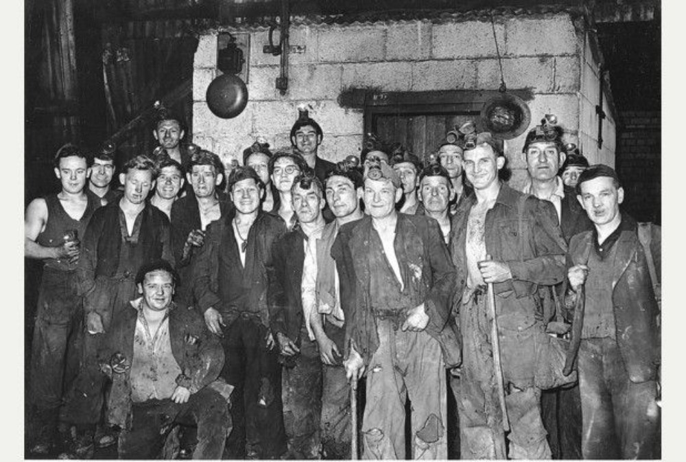 Pensford miners waiting to descend for a saturday overtime shift , probably summer 1949