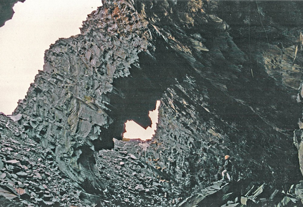 One of the huge pillars at entrance to one of the 'caverns' on I think Middle Vein. About 1987